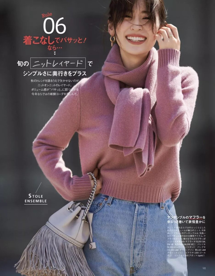基础色的打底衫,用一点彩色来提提神,就跟水墨画里的留白似的,余韵自生。