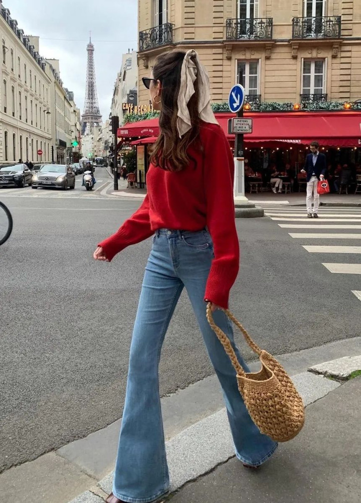 驾驭不了皮革?那就选牛仔,复古喇叭款最妙,脚踝处一荡,腿长两寸。搭配条纹毛衣,拎个小方包,巴黎左岸的下午,不过如此。