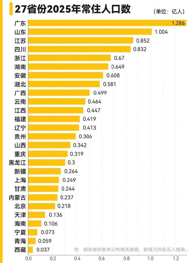 放在天下河山里看,广东的东谈主口上风险些是断层来源。2025年已公布数据的27个省份中,仅7地常住东谈主口正增长,广东以79万增量稳居榜首,比第二名浙江的31万跳跃一倍多。