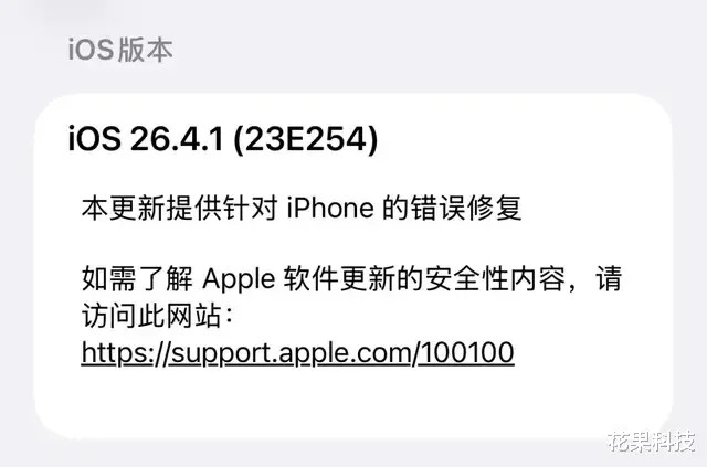 更新日记表示,iOS 26.4.1 和 iPadOS 26.4.1 郑再版主如果提供猖獗建造,仅仅一次建造性的小更新。