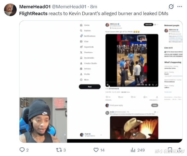 除了杜兰特疑似小号的事件,北京技艺2月16日,游戏平台好意思国网红FlightReacts还在个东谈主社媒上吐槽杜兰特,他示意杜兰特在全明星赛前还在玩手机,他写谈:KD啊,别再刷社媒了,被再用你的小号了,不要在社媒上跟别东谈主对线了,好好打篮球吧!住手用社媒吧,专心打完这个赛季再说。