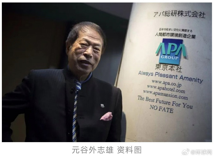 据环球网征引日本《产经新闻》14日报说念,日本APA酒店集团雇主元谷外志雄已于日前死一火。2017年,元谷外志雄曾因在旗下酒店客房中摒弃我方撰写的狡赖南京大屠杀及日本侵华历史竹素,激励全球争议。