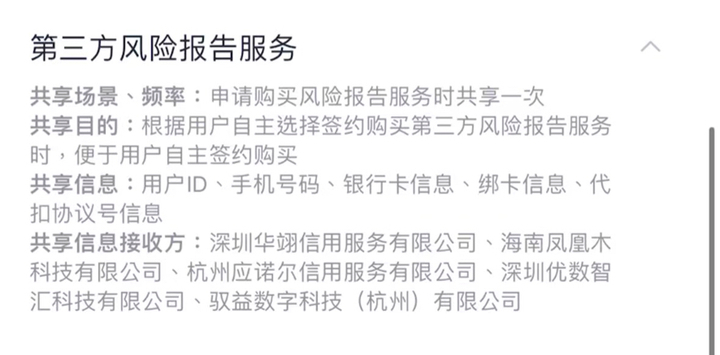 你我贷、极融借债App内,还向用户提供个东谈主风险论述劳动,平台中风险论述劳动触及企业包括深圳华翊信用劳动有限公司、海南木科技有限公司、杭州应诺尔信用劳动有限公司、深圳优数智汇科技有限公司、驭益数字科技(杭州)有限公司。