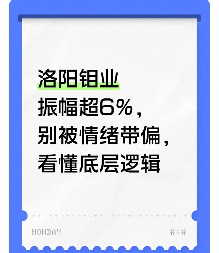关注我,后续会持续跟踪洛阳钼业的项目进展、股价走势,以及有色板块的行业动态和政策变化,及时为大家整理解读最新的市场信息,让你在把握板块节奏时多一份务实参考。